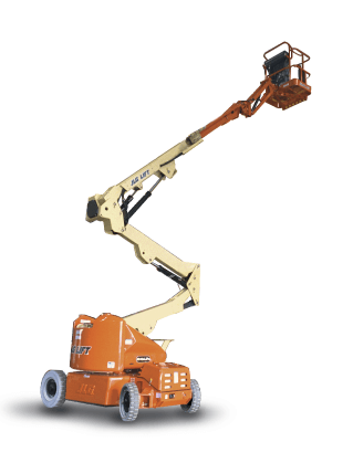 Electric Articulated 40ft (12.19m) JLG Knuckle Boom Lift is suitable for indoor and slab applications. With low emission and noise, it is designed to reach up ‘n’ over obstacles with its high-efficiency electric power. Supplying safety at a working height of 14.19m (horizontal outreach: 22ft (6.83m)), with the capacity for 2 people, this unit also has non-marking tyres. 40ft Boom Lifts are also available in a Genie model.