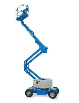 Electric Articulated 45ft (13.92m) Genie Knuckle Boom Lift is suitable for indoor and slab applications. With low emission and noise, it is designed to reach up ‘n’ over obstacles with its high-efficiency electric power. Supplying safety at a working height of 15.92m (horizontal outreach: 25ft (7.65m)), with the capacity for 2 people, this unit also has non-marking tyres. 45ft Boom Lifts are also available in a JLG model.