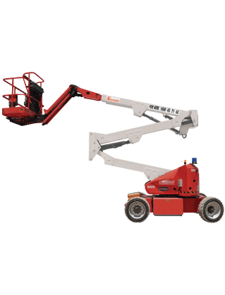 Electric Articulated 45ft (13.72m) JLG Knuckle Boom Lift is suitable for indoor and slab applications. With low emission and noise, it is designed to reach up ‘n’ over obstacles with its high-efficiency electric power. Supplying safety at a working height of 15.72m (horizontal outreach: 23ft (7.24m)), with the capacity for two people, this unit also has non-marking tyres. 45ft Boom Lifts are also available in a Genie model.