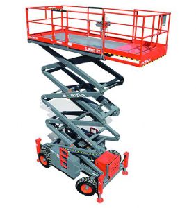 Diesel 41ft (12.50m) Skyjack Scissor Lift has 4WD accessibility, is suitable for outdoor and rough terrain use and is gradeability of 30%. With a working height of 12.50m, this machine has full navigation at max height with extension deck; it can safely lift a three-person team.