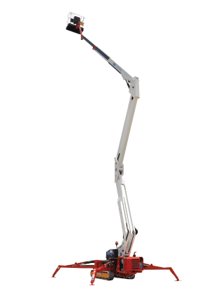Diesel 49ft (15.00m) CTE 170 Traccess Spider Lift is a dual track-mounted versatile Knuckle Boom Lift, suitable to navigate difficult to reach tight spaces with limited access. It can be used for indoor, outdoor, and rough terrain hire. Graded to 31%, this unit has outriggers for sturdy and reliable safety, with a working height of 55ft (17.00m) 2 person capacity, and a max outreach of 24ft (7.50m).